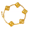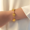 A pure gold clover bracelet with exquisite design, shining with golden light. Each blade of grass hides a lucky expectation, wearing it on the wrist, elegant and unique, bringing you full of blessings.