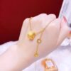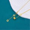 A pure gold necklace, with a circular ring and cylindrical pendant complementing each other, simple yet ingenious. Crafted with exquisite craftsmanship and superior texture, worn around the neck, showcasing unique fashion taste.